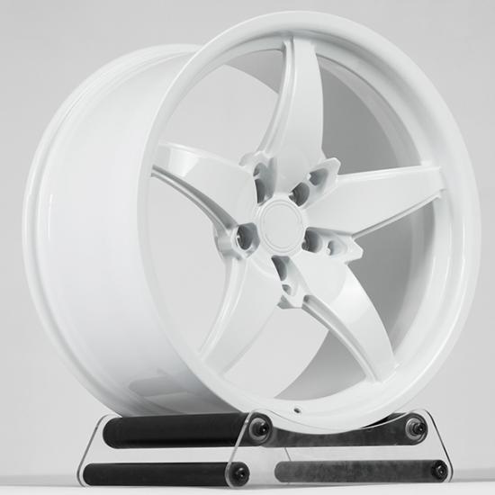 This 5 spoke white wheels is monoblock forged, our available size from 15" to 24". to fit any car model.