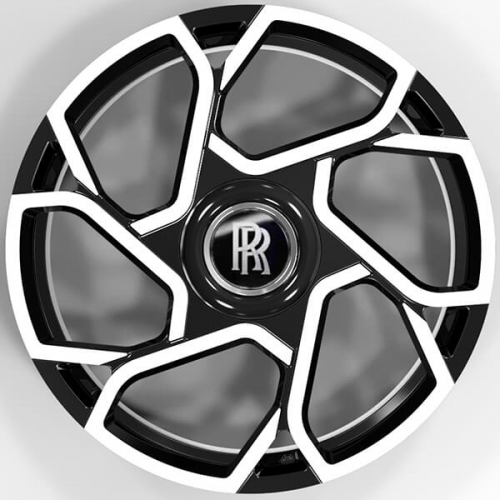 This rolls royce wheels are made to fit 2018-2021 rolls royce cullinan aftermarket, it's monoblock forged rim model, gloss black and machined finish, staggered spoke. size 23x10j, pcd 5x112, cb66.6 , weight 18.3 kg per rim. we can make this rolls royce cullinan wheels diameter 16 17 18 19 20 21 22 23 24 inch.
